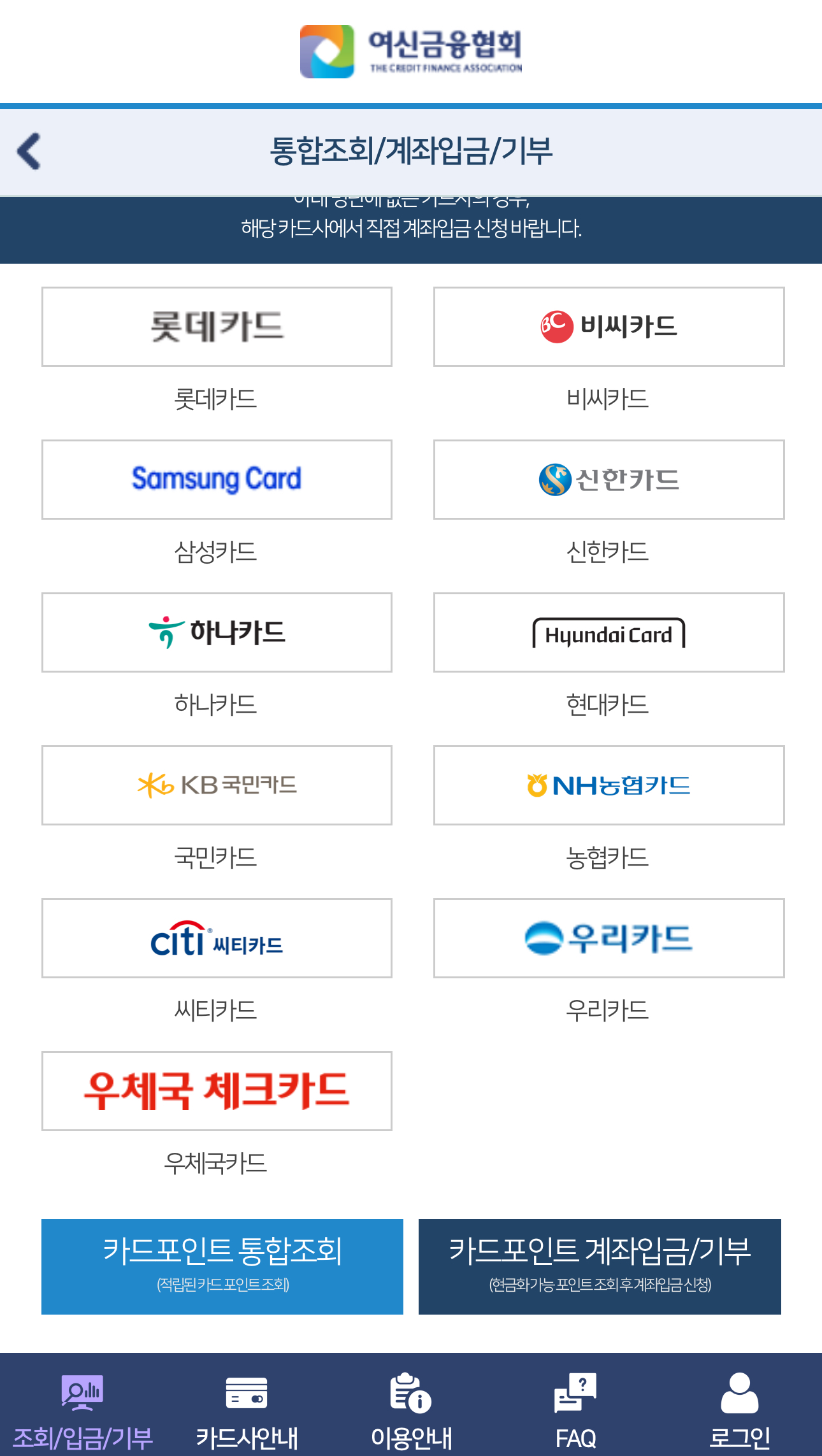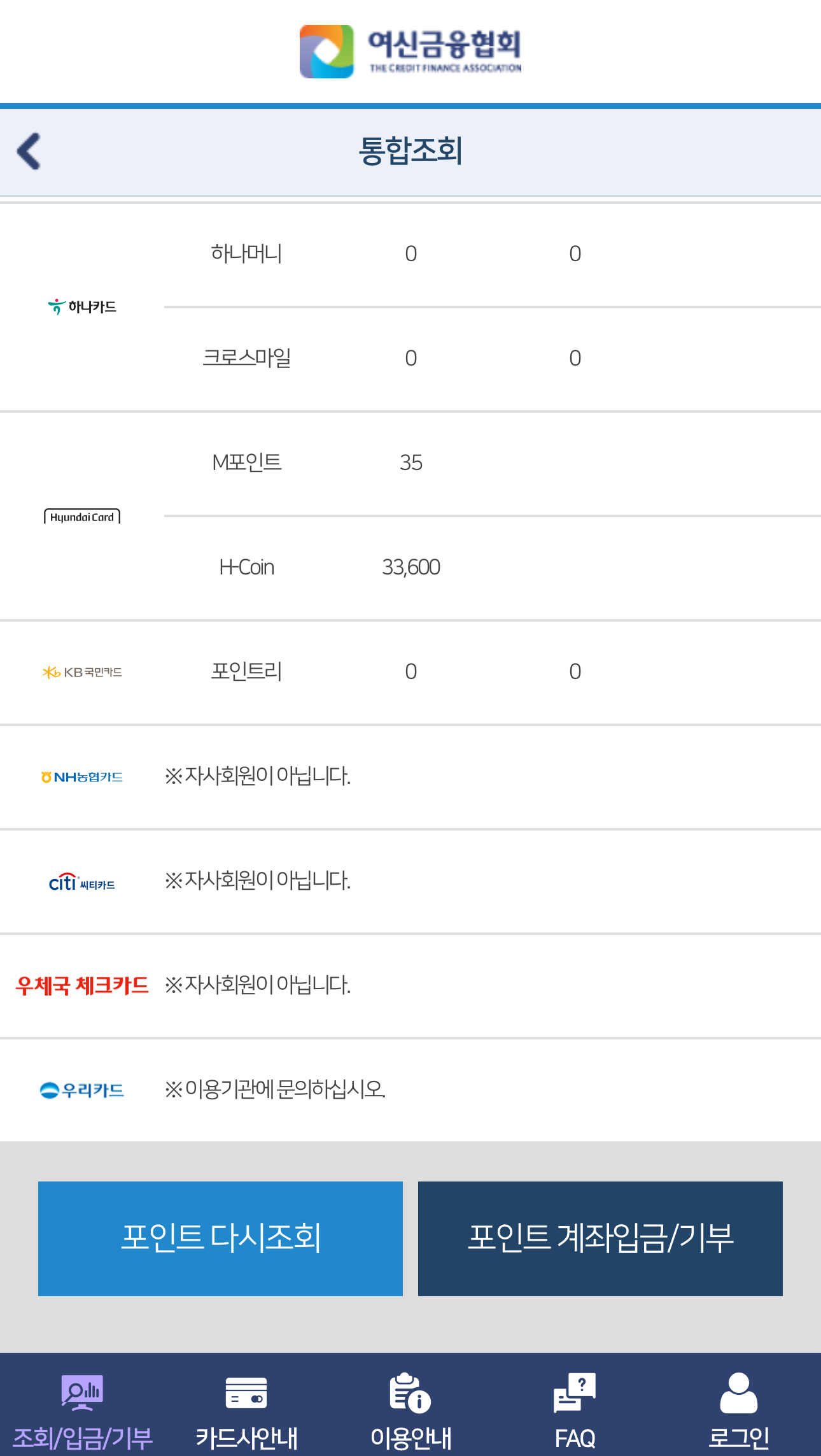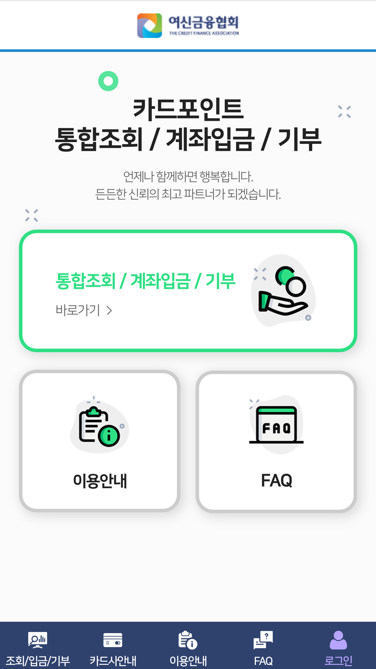 카드포인트통합조회 / 계좌입금 / 기부 언제나 함께하면 행복합니다. 든든한 신뢰의 최고 파트너가 되겠습니다.