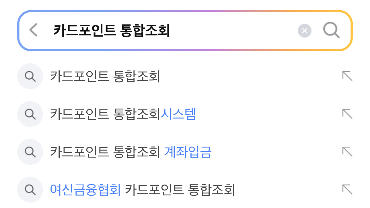 먼저 검색창에 카드포인트 만 쳐도 바로 밑에 나오긴 하더라고요!