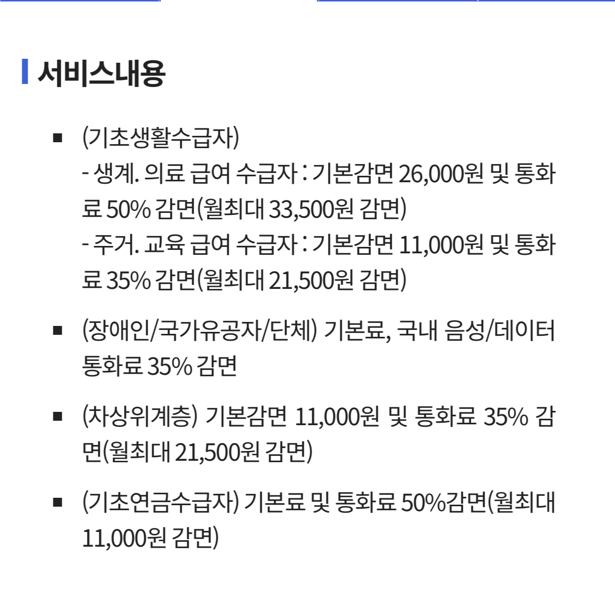 그래서 나온 좋은 제도인데요. 사회적 취약계층을 대상으로 통신요금을 감면해주는 서비스 입니다.