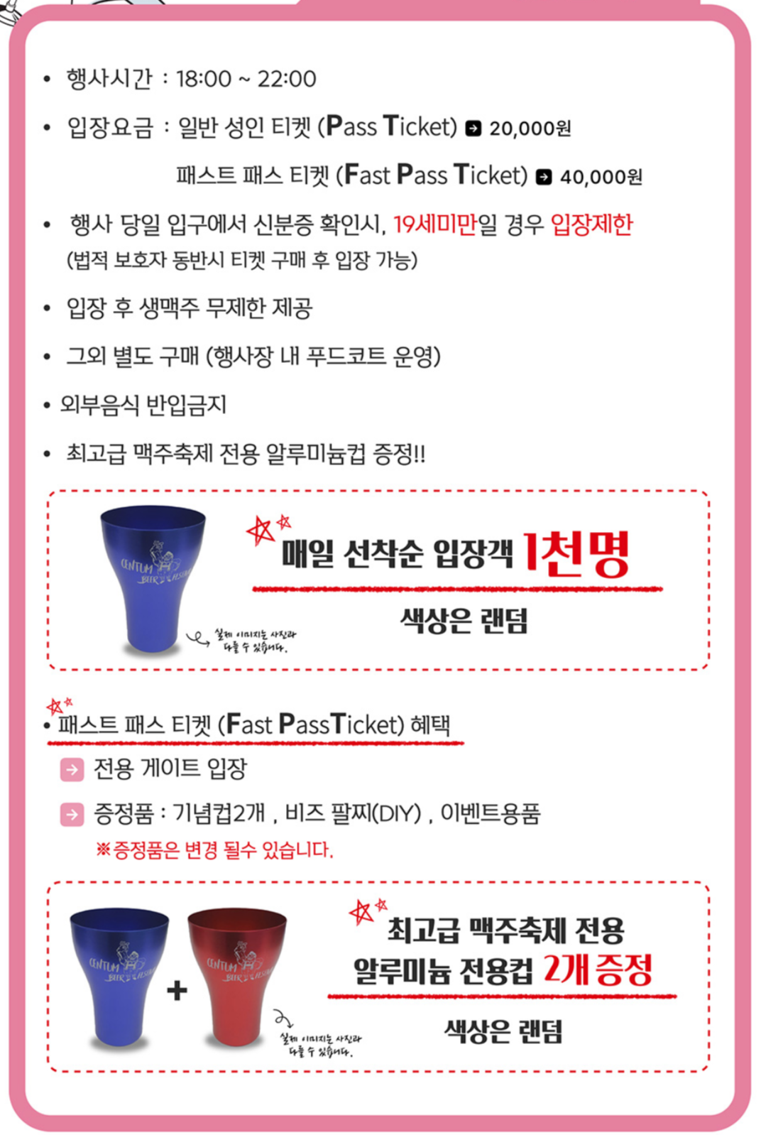 카테고리 없음 2024센텀맥주축제 입장권 사전예약 꿈의 해석사 2024. 5. 30. 12:11 티켓안내 입장안내 이용안내 지금바로 사전예약 하러가기! 이미지를 클릭하시면 yes24로 이동합니다. ^^^^^^^ 이미지를 클릭해서 사전예매 하러가기 ^^^^^^^ 공유하기 게시글 관리 꿈의해석사 저작자표시 (새창열림)